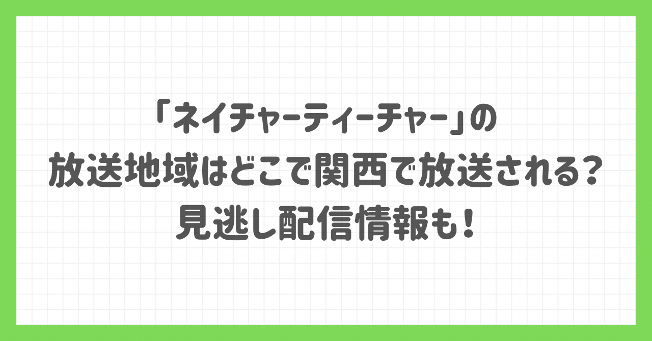 そこでこの記事では、「ネイチャーティーチャー」の放送地域はどこなのか、関西では放送されるのか、見逃し配信情報についてもまとめています。