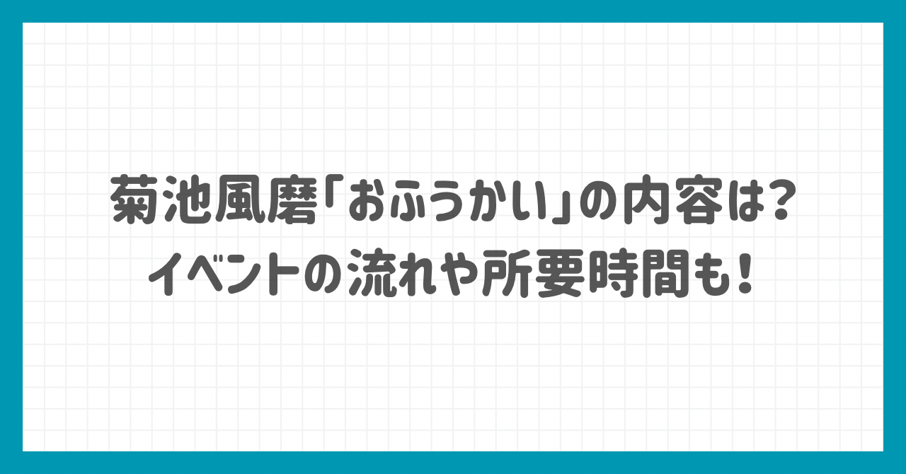 この記事では、ネタバレを避けながら、菊池風磨さんの「おふうかい」のイベント内容・当日の流れ・所要時間・座席や見え方について、参加者の声をもとにわかりやすくまとめています。