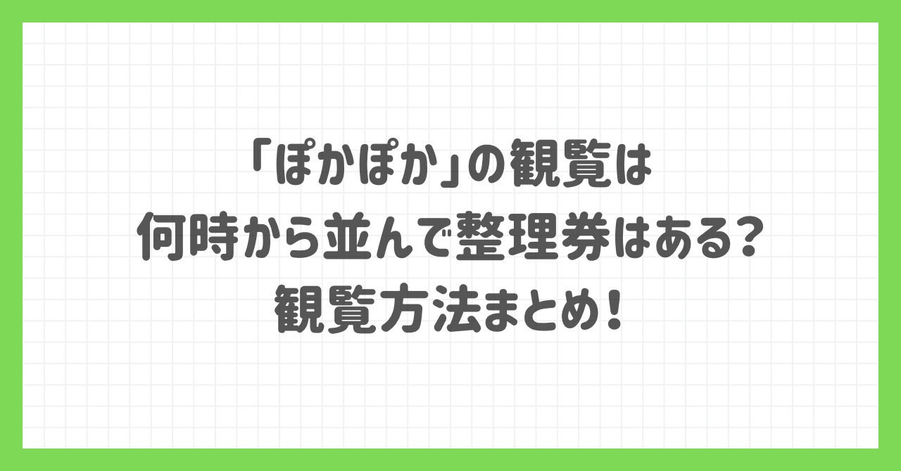 そこでこの記事では、ぽかぽかの観覧方法についてや、何時から並んで整理券はあるのか、どこで見れるのかについて調査してみました。