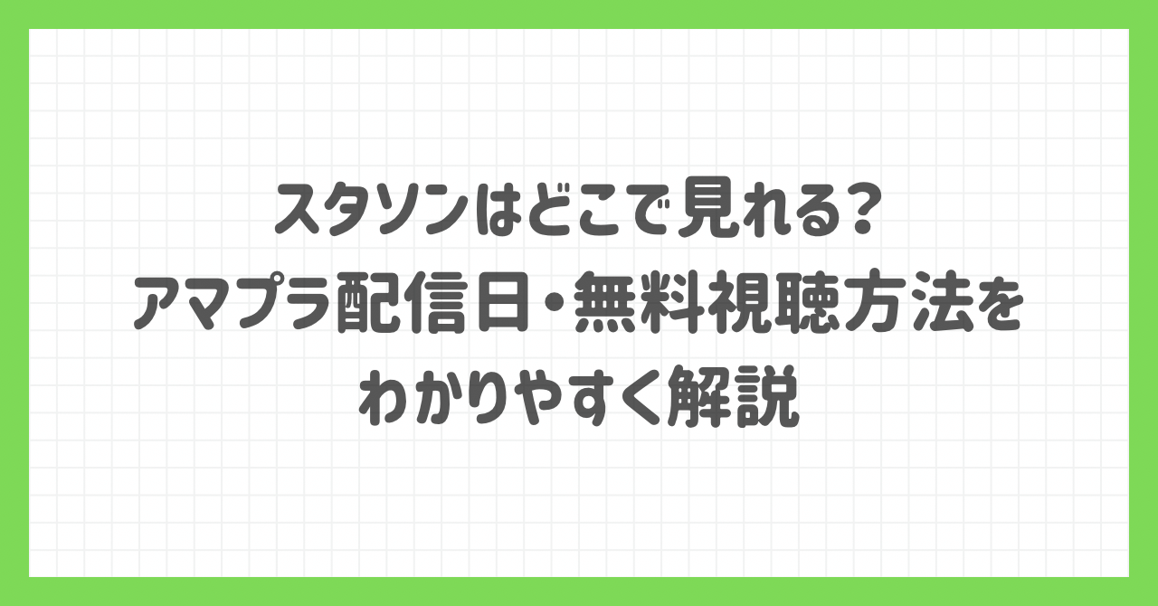 そこでこの記事では、スタソンはどこで見れるのか?アマプラでの配信日・配信時間・無料で視聴する方法を中心に、初めての方にもわかりやすく最新情報をまとめました。