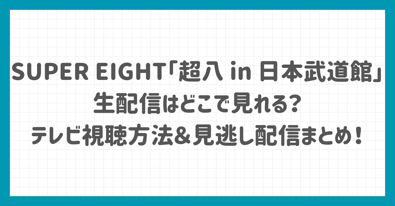 SUPER EIGHT『超八 in 日本武道館』生配信の基本情報