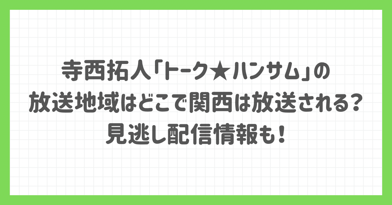 そこでこの記事では、寺西拓人さんがMCを務める「トーク★ハンサム」の放送地域はどこなのか、関西では放送されるのか、見逃し配信情報についてもまとめています。