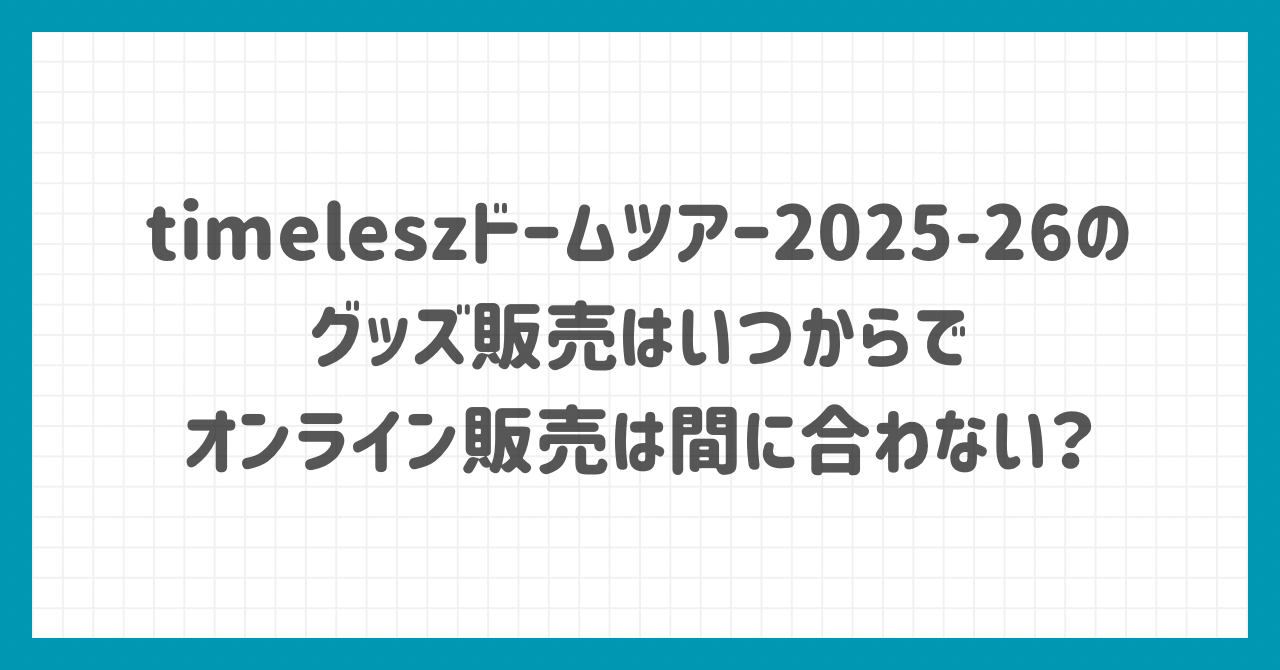 そこでこの記事では、過去のtimeleszツアーグッズ販売の傾向をもとに、timeleszドームツアー2025-26のグッズ発売日予想・オンライン販売情報・会場販売の注意点などについてまとめました。