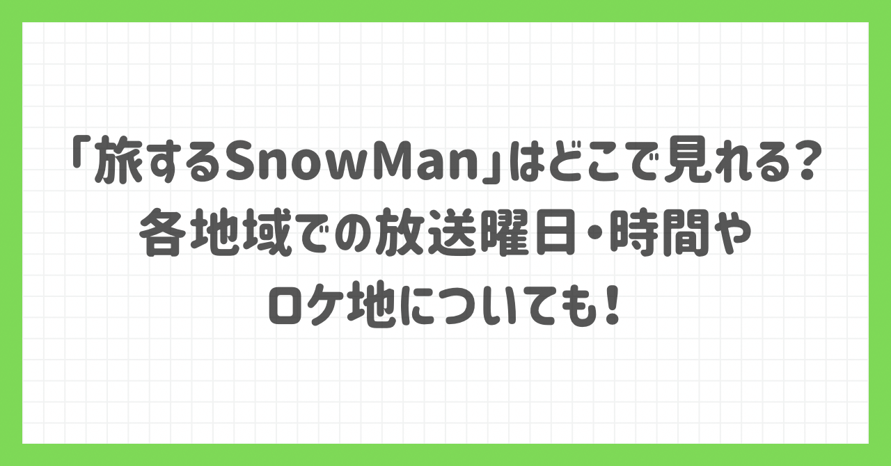 次の項目にて、「旅するSnow Man」の各地域での放送時間について紹介します。