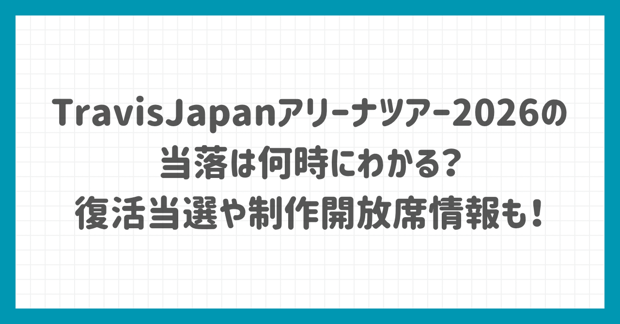 そこでこの記事では、TravisJapanアリーナツアー2026の当落は何時にわかるのか、復活当選や制作開放席情報につて調査してみました。