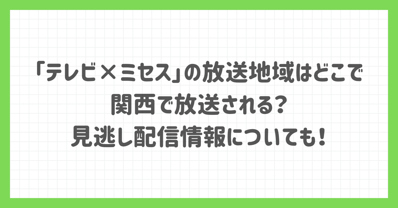 そこでこの記事では、「テレビ×ミセス」の放送地域・関西で放送はされるのか・TVerなどの見逃し配信やリアルタイム配信情報をわかりやすくまとめました。